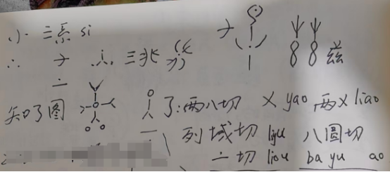 那么,平包括通,竖一的通,和古和由,平通都是横竖,古和由就是斜的了,刚才说的这个域,突出这个点了。他就变成斜的,古和由,它也是ye、zhi,zhi实际上是zhv,。这个是gv,这是fu,gv、fu切gu古,这bi没有,按道理说这是bi,它也是这个,对不对,也就是,“一”是这个方向上的斜线,由这个方向斜线。它的写法,为了区别,一要写成弧线,古由要写成直线,虽然写成直线了,但是你还得知道它原来是弧线,其实他这个,这就是为了,什么叫文字多样化,文字多样化,即便这个古由,在实际的书写过程中都写成了横平竖直,原因是什么?原因是你在实际的书写过程中,它很平面化,它不可能在立体状态下给你展示。